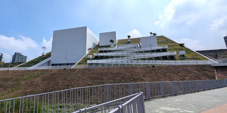 美術館側面,說是「藝術山丘」,之字形步道可以上去賞景.↑