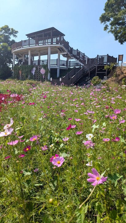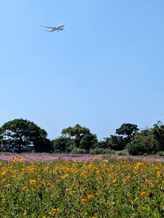 今秋園區沒什麼特別的展覽,所以園區裡就是幾片黃花及大花波斯菊花田,以及幾行向日葵.↓