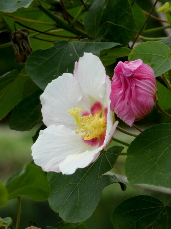 山芙蓉又稱三醉芙蓉,花開初為白色,午後淡粉紅色,傍晚或花謝前粉紅色,有如美人醉酒般!↑↓