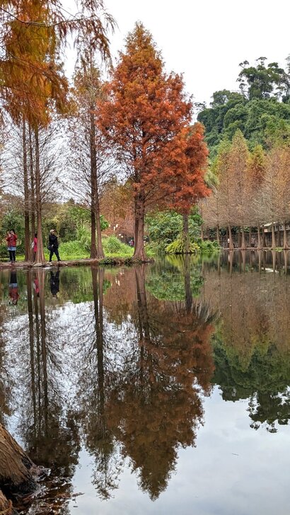 趕快來到池邊,雖然天色不好,但水鏡樹影,還是好看的!↓