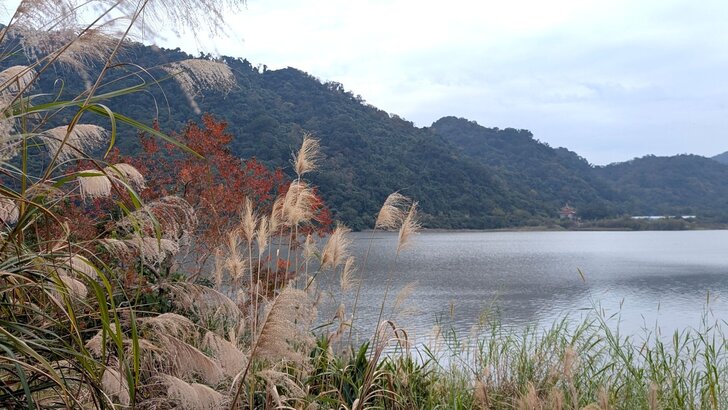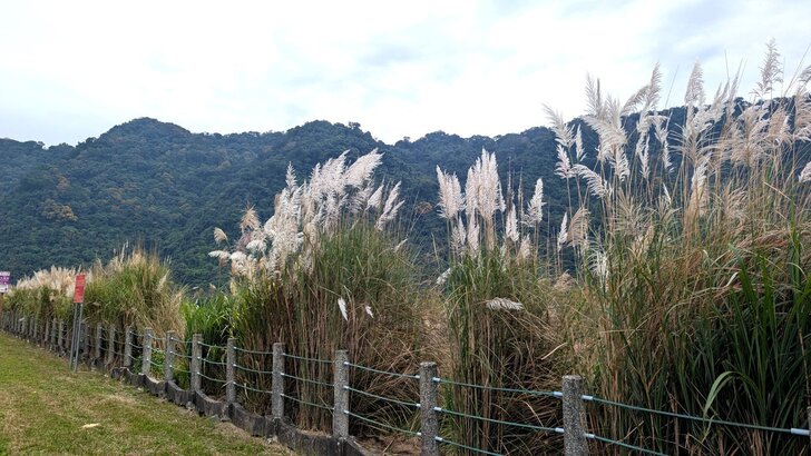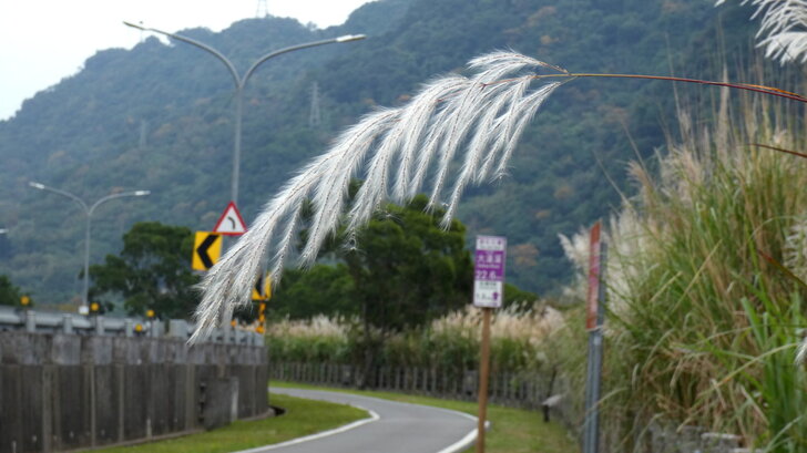 過了中庄景觀土丘(地景原野風箏場),來到鶯歌區內,自行車道旁全是甜根子草,白芒花開滿,別有一番風景.↓