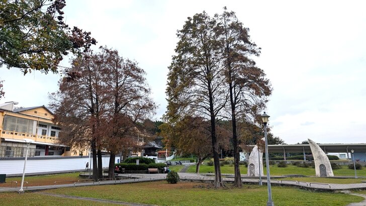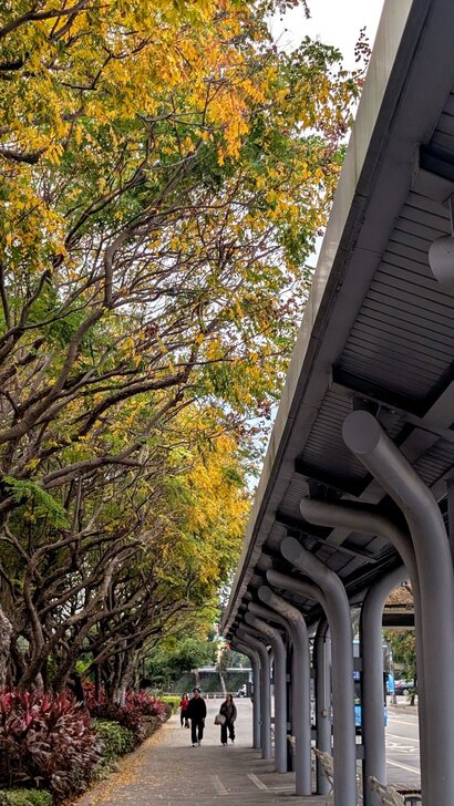 不過,出站後,先看到的卻是黃葉澄澄的欒樹.↓