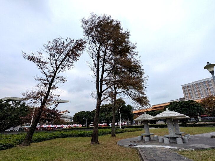 轉搭捷運紅線到圓山站,提前下了車,因這裡有幾株落羽松及幾株紅花風鈴木.