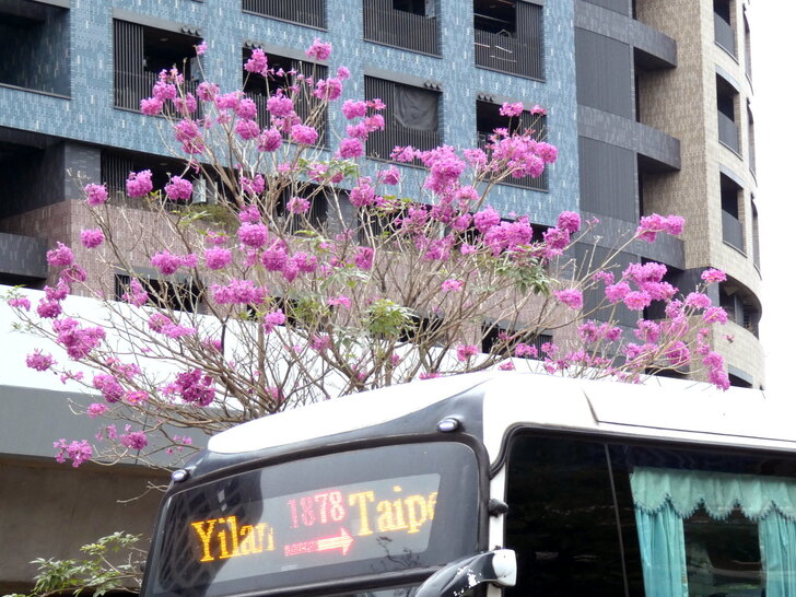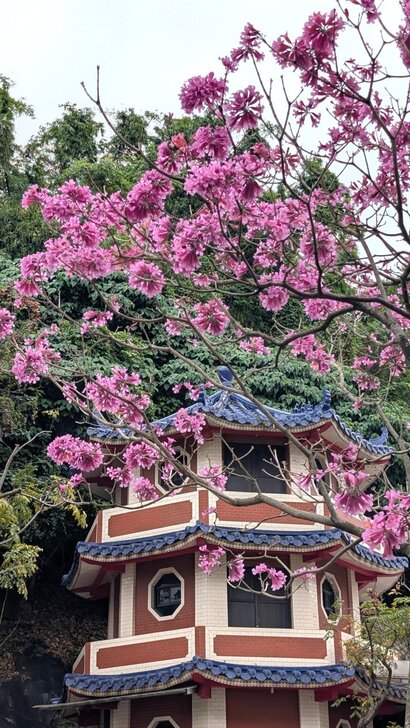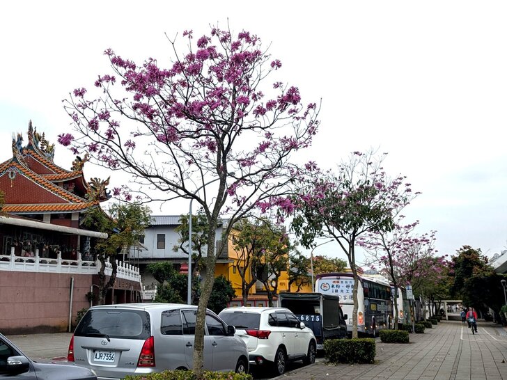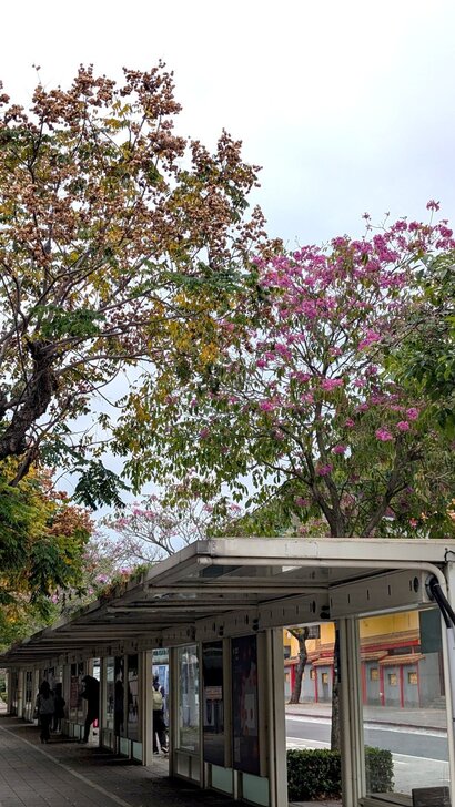 紅花風鈴木開得不錯,在陰暗天空下,努力讓它呈現光彩!↓
