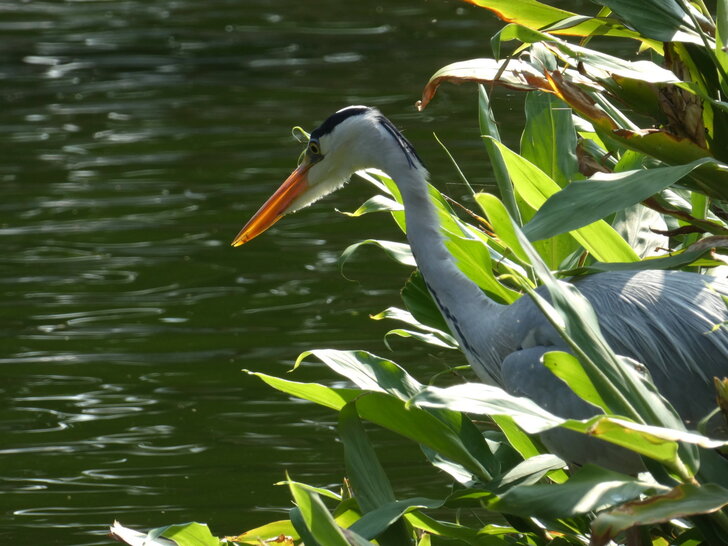 一門大礟對著的方向看去,是隻常見的蒼鷺,大概是要拍吃魚的畫面吧.↑