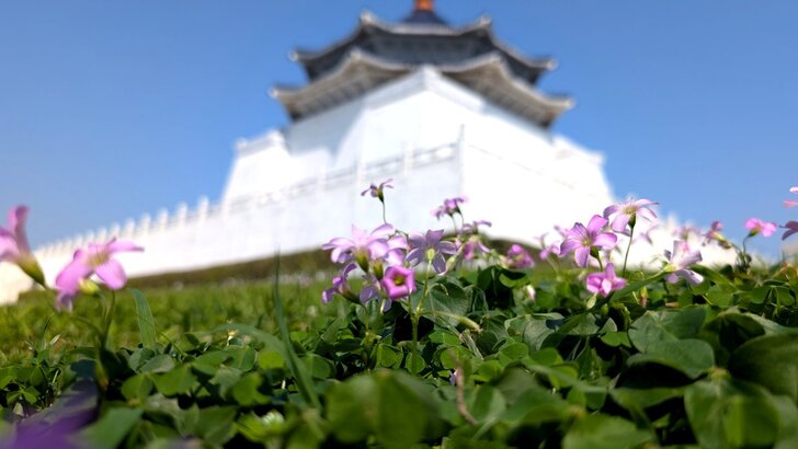 2/22大年初六,想紀念堂的櫻花應該開了,於是和風紫一起來走春.↓