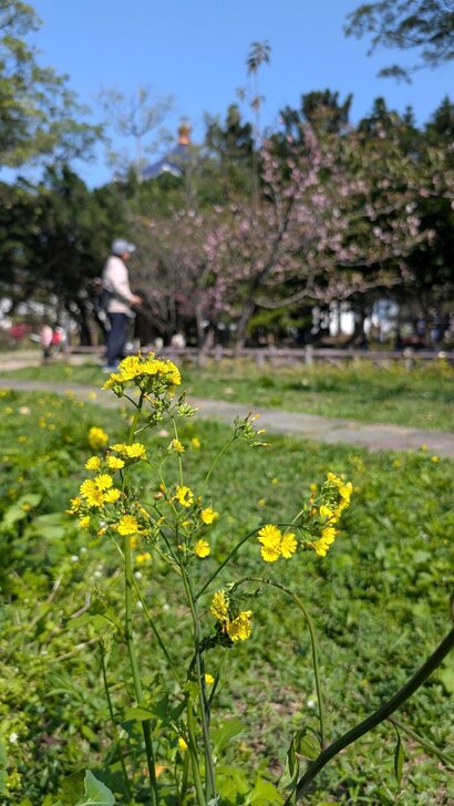 離開紀念堂後側,來到南邊的角落(愛國東路與杭州南路交會處),居然滿園黃鵪菜花開,這在公園可是少見景象.↓