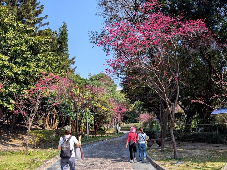 走向大忠門那一側,八重櫻花道上花兒開.↓