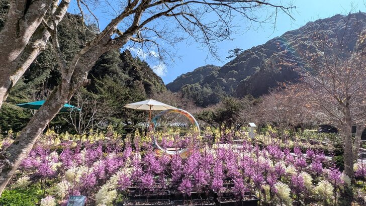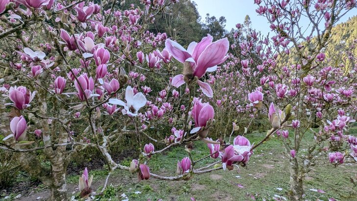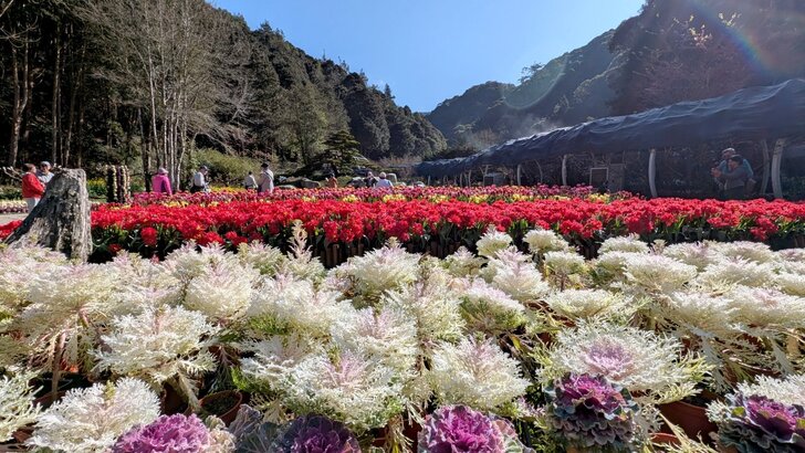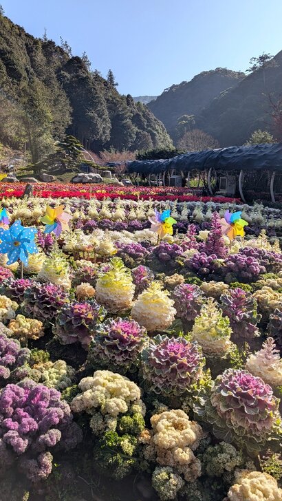 第二天早上八點多搭了遊園車來到花卉中心,那販賣部及花卉溫室在整修中,就直接往上走,這時中心的花卉,主要是葉牡丹(羽衣甘藍)、鬱金香及辛夷(木蘭花).↑↓