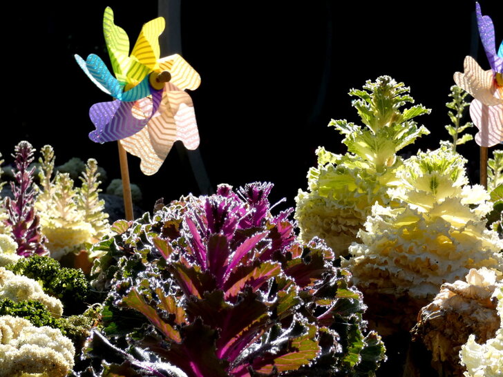 葉牡丹有綠有白有紫,顏色繽紛,其實好看!↑