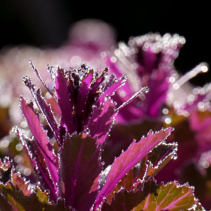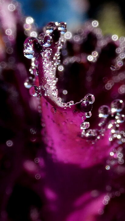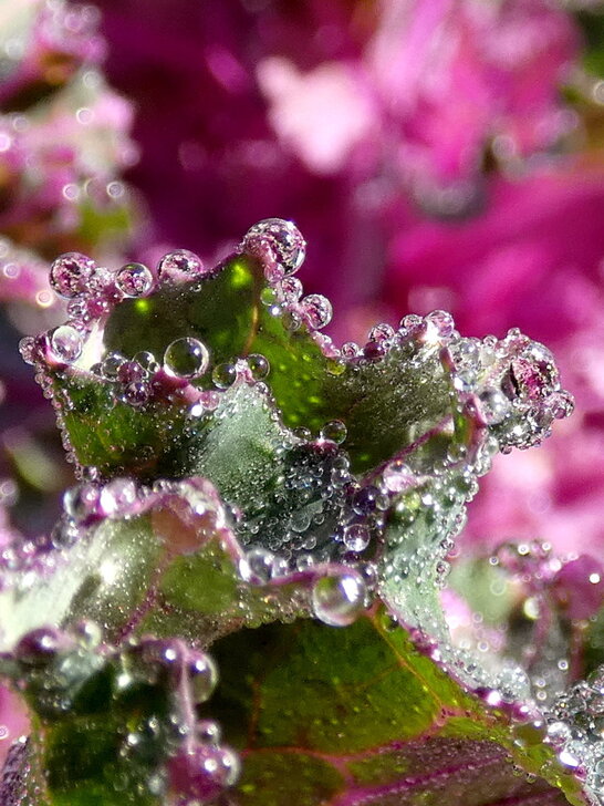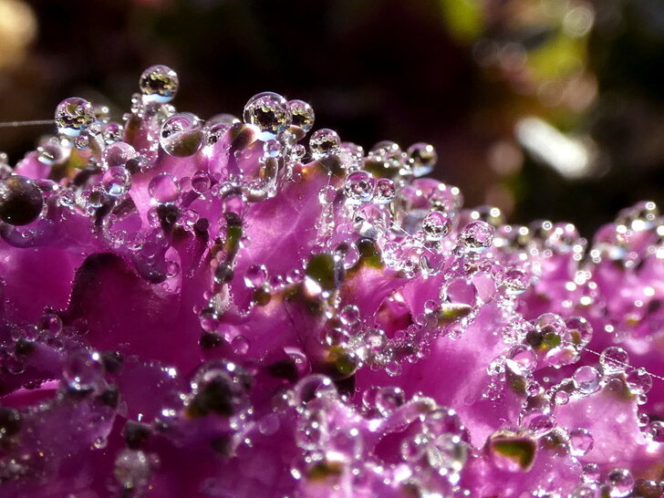 不知是朝露還是園丁灑水,葉牡丹上都是晶瑩水珠.↓