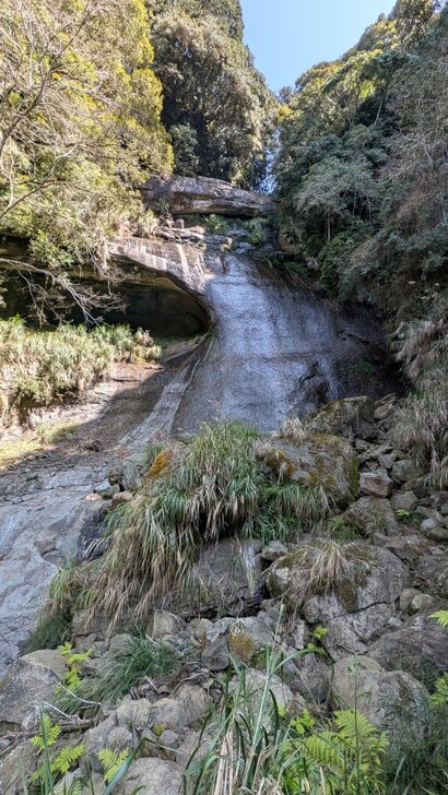 然後走燕庵步道上到龍麟瀑布,到時一看,有點傻眼,哎!怎麼都沒水,園區也沒說一聲,害我走得好累說.↓