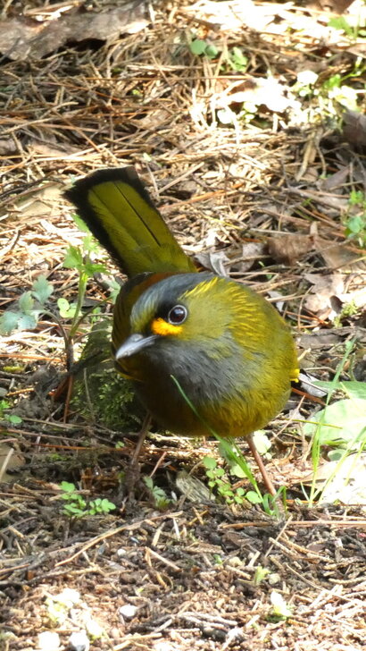 回到大飯店前的溪山路,看見一群鳥兒飛到一棵樹下覓食,趕快與風紫過去拍,原來是藪鳥.↓