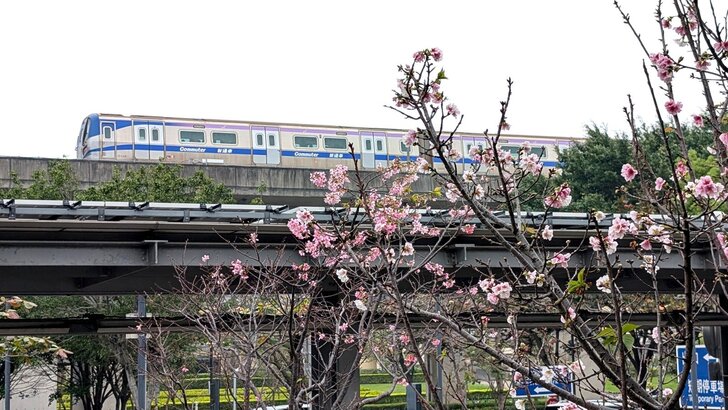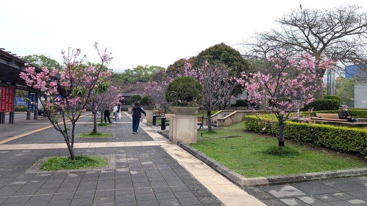 10:32到桃園站,看到高鐵站四周都有櫻花開,之前只知有美人樹,沒想到也有這麼多櫻花.↑