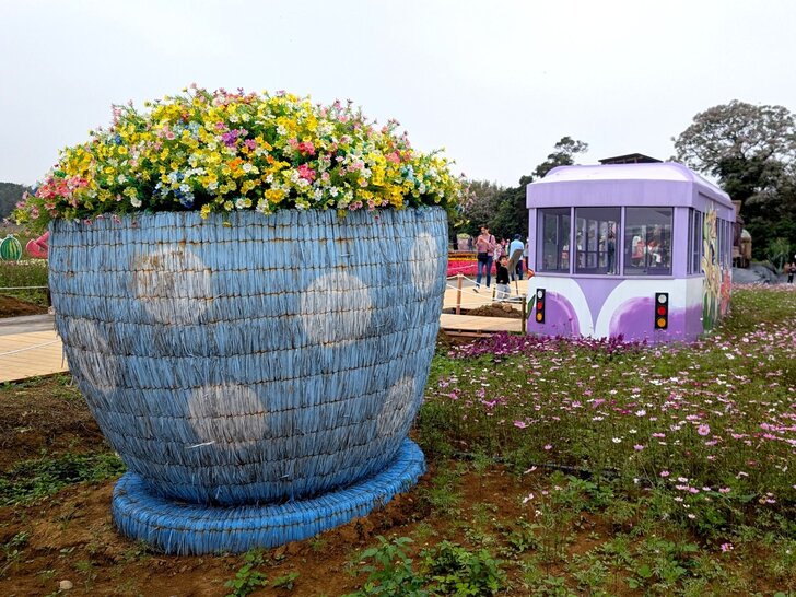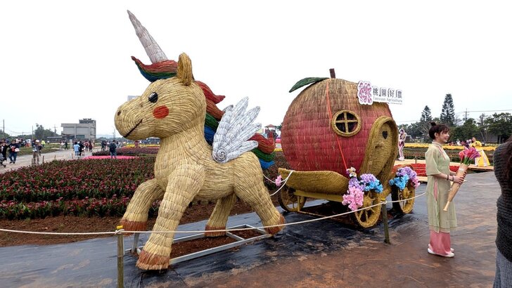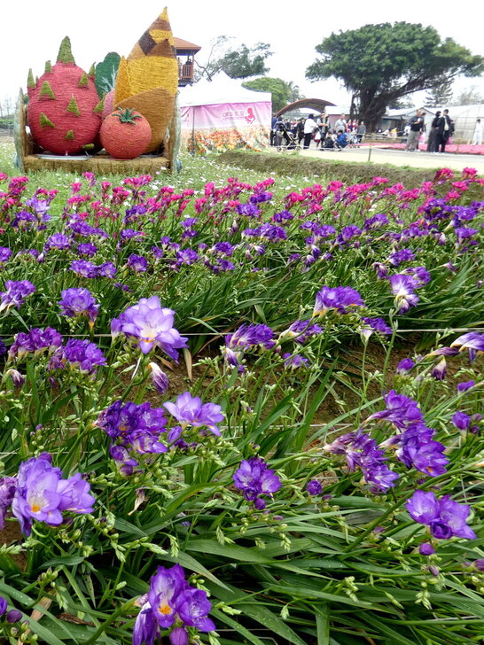 今年桃園彩芋季於3/27~4/12舉行,以「園夢奇芋記」為主軸,3/29早上九點多天氣陰,我也就慵懶於出門,後來看到彩芋季期間,高鐵桃園站有免費公車(平日30分一班、假日15分)到溪海休閒農業區(彩芋季會場),咦!這麼方便,那還等什麼,搭了10:11的高鐵就踏上採芋的行程.↓