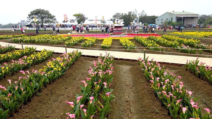 我大概看了一下會場花海的花種,當然主要是彩色海芋,另外還有小蒼蘭、姬百合、秋海棠、萬壽菊、一串紅...等.↑↓