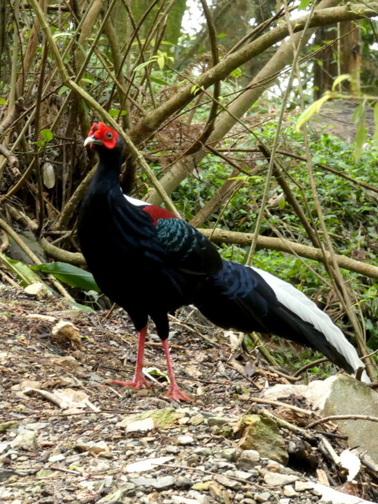 我們還是下車去四處看看有無鳥蹤,最後只好嘆口氣上車準備發動車子時,忽見一隻藍腹鷴(雄)從下面斜坡上來,我急忙通知風紫趕快到窗邊來照鳥.↓
