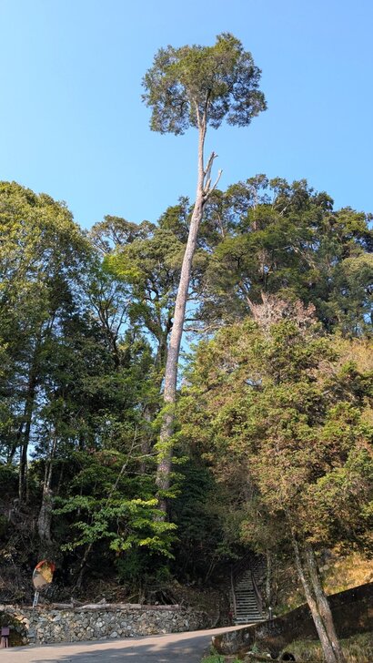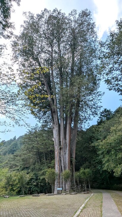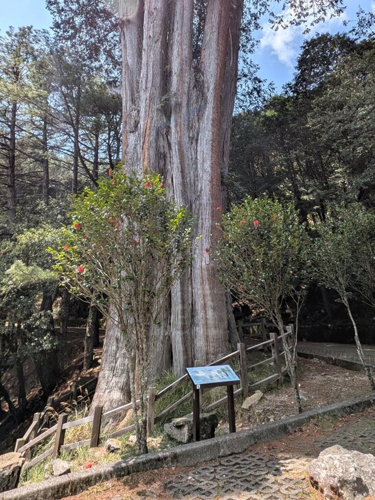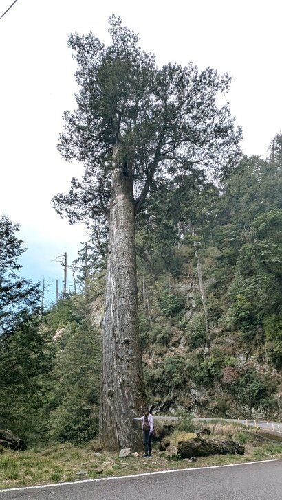 八點多退房後,再上小雪山資訊站,路上一株參天古樹,下去與它合照一下.↓