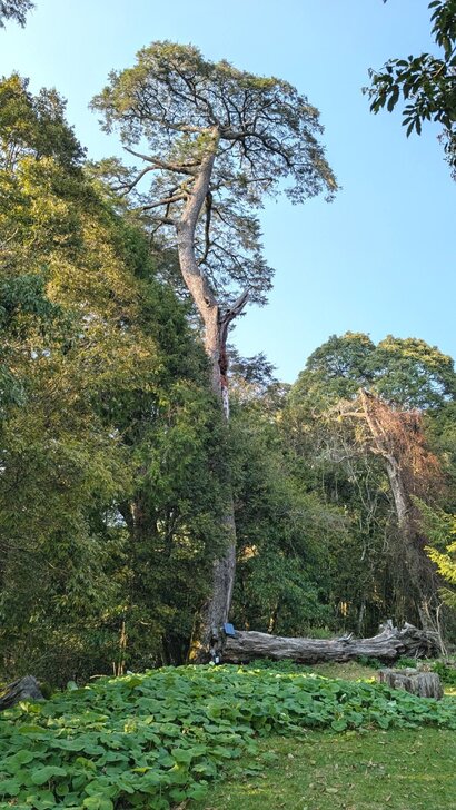 早餐後園區逛一逛,這棵樹三年不見,好像又抽高不少,卻沒長胖.↓