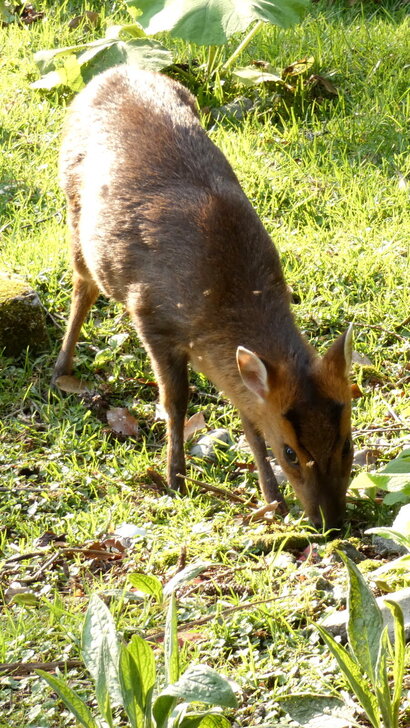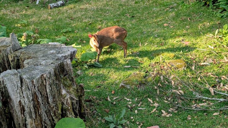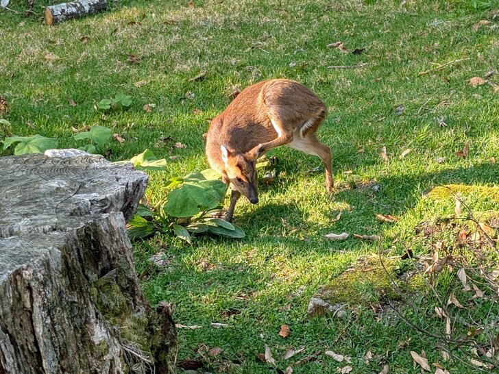 覺得這樹及地上蜂斗菜等好看,正想到樹那裏拍照,才發現有隻山羌在草地上.↑↓