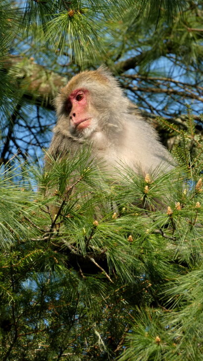 山羌拍夠了後,就回賓館,抬頭卻見一隻獼猴在樹上休息.↓