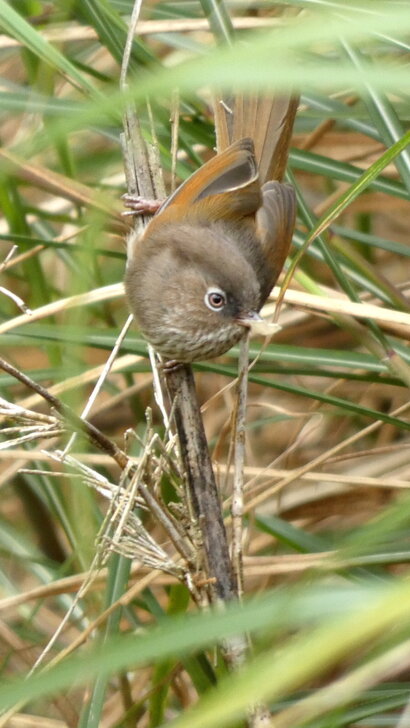到了資訊站,大家都在廁所旁等待,沒多久鳥兒來了,我站錯位置,被草叢擋住,急忙換點,居然還能拍到二、三張.↓