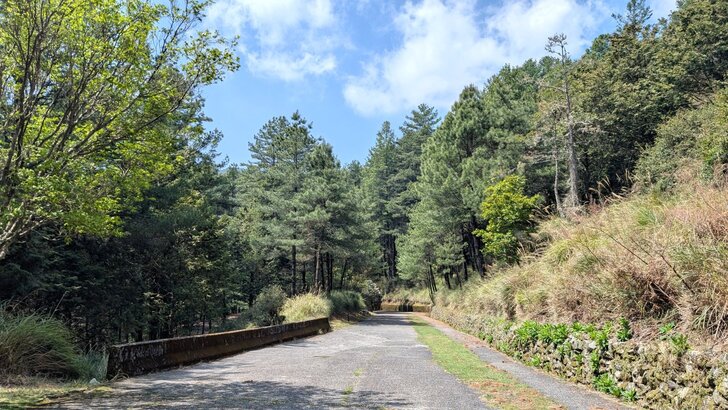 天池往下走二百公尺就到了大雪山神木停車場,停車場往下走1.5K就可抵達神木所在,水泥路面,松林環繞,走來舒適.↓