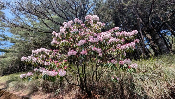 往下二、三百公尺,有幾株玉山杜鵑盛開,好看!↓