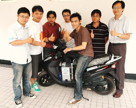因應高油價時代來臨,義守大學機械與自動化工程學系師生研發「氫油混合動力機車」,不但節能減碳,還能省油逾一成,未來只要花3千元,舊型機車也可改裝成氫油車。 義守大學機動系副教授朱立民表示,「氫油車」主要以電解方式取得氫氧,體積較小、產生氫氧速度快,達到「即產即用」效果;且有防回火設計,安全性高,不須額外再用氣體鋼瓶儲氫。 研究團隊表示,這項裝備透過系統電解供應氫氧至四行程機車引擎,使氫氧與汽油混合燃燒,再配合機車原有燃料汽油,一同導入引擎燃燒,提高引擎燃燒速度,增加引擎熱效率,進而降低燃料消耗量與廢氣排放汙染。 朱力民表示,國外車商近年來引進Hybrid油電混合車款,政府單位開始使用生質柴油,顯示替代性能源逐漸受到國人注意。 改裝後的氫油混合機車,經實驗室動力數據測試,並由學生實際上路試乘,發現一氧化碳排放量降低約14%、節省11%耗油量、降低碳氫化合物約32%,「完全不影響機車原本馬力及扭力!」 |