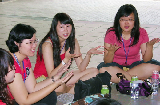 (下圖)來自加拿大的女大學生李詠恩(右二)在分組自我介紹中,說想逛逛台灣的夜市。記者林保光/攝影