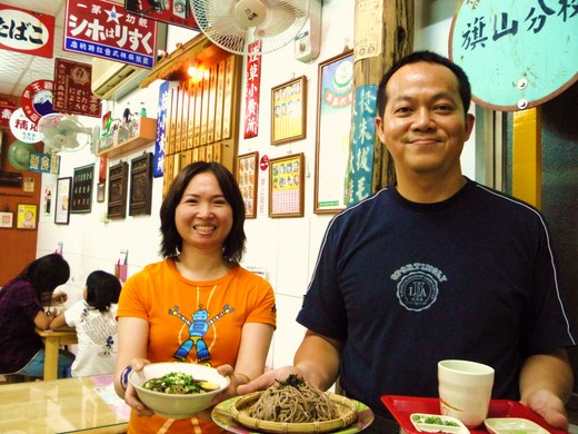 走入旗山鎮一家位於巷子內沒有招牌的麵店,彷彿進入時光隧道,店家除推出日式招牌蕎麥涼麵,並佈置各式台灣早期古物,結果吸引「兩極化」客人,少年仔因為新奇感,特地來「觀摩」,吃麵像旅遊;年長者則來一場懷舊之旅,勾起童年回憶,小麵店賣健康兼感情,炎炎夏日生意強強滾。 麵店開業18年,45歲老闆梁益銘小時後家裡開傳統「柑仔店」,退伍時有天在跳蚤市場看到一塊「菸酒專賣店」掛牌,不禁想起兒時記趣,開啟古物收藏興趣。 「我想找回過去那段純真的時光!」梁益銘說:「這些情景是不少人小時候共同的畫面,獨樂樂何不眾樂樂。」兩年前他將蒐集的古物陸續擺設,裝飾用餐環境,其中「鎮店二寶」是一根電線桿,上面還有「殺朱拔毛、反攻大陸」的標語;另一塊高雄客運站牌「旗山分校」,是一間被廢掉的小學,站牌被撤除,梁益銘透過網拍買下來。 「二寶」特色鮮明,尤其站牌是旗山,更符合當地色彩,附近大學生在網路「呷好逗相報」,常揪團「相招」來吃麵與站牌合照,捕捉「到此一遊」的證明。 梁益銘指出,不少子女會戴著年邁的雙親來吃麵,有的老人家一看到熟悉的物品,精神抖擻地滔滔不絕講古起來,「看到全家福來吃麵,凝聚一家子的情感,心裡很感動!」 |