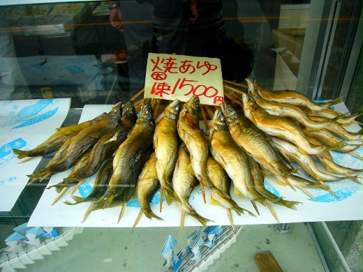 不為釣魚而來、是被烤鮎(ayu)魚的香味引了過來