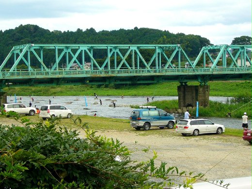 行經 栃木(Tochigi) 黒羽(Kurobane) 開禁的那珂川可見數數釣客