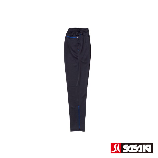 SASAKI 吸濕排汗功能伸縮針織運動長褲男-黑/寶藍(窄褲口)
