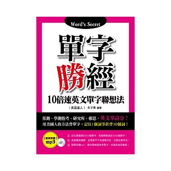 單字勝經:10倍速英文單字聯想法(附MP3)購買網址:http://www.books.com.tw/exep/assp.php/87926/products/0010541713?utm_source=87926&utm_medium=ap-books&utm_content=recommend&utm_campaign=ap-201711