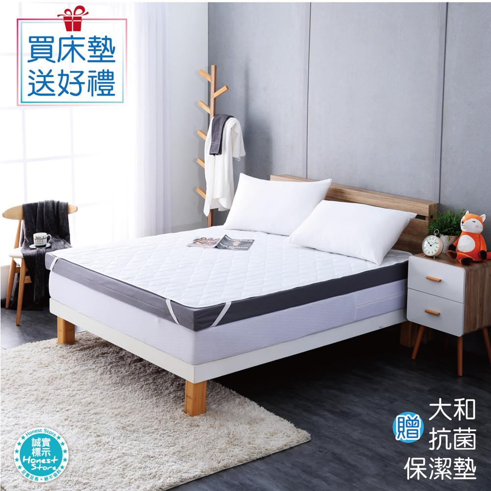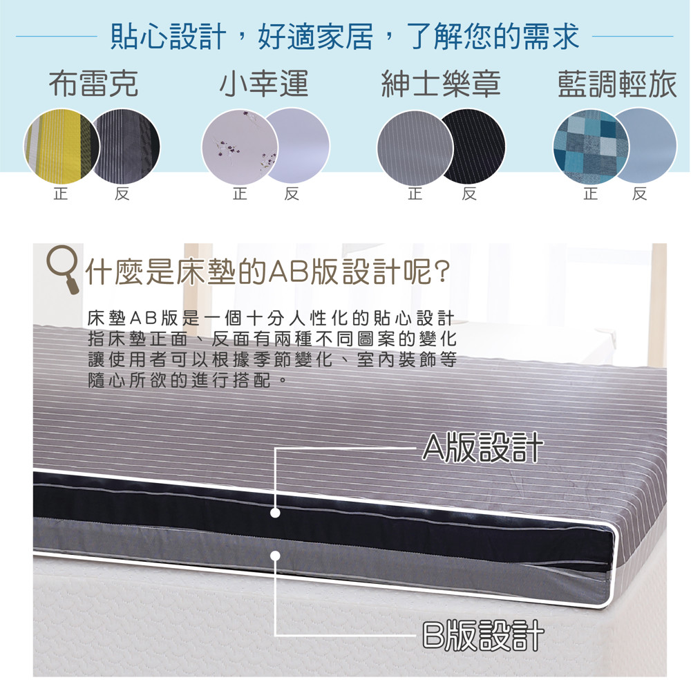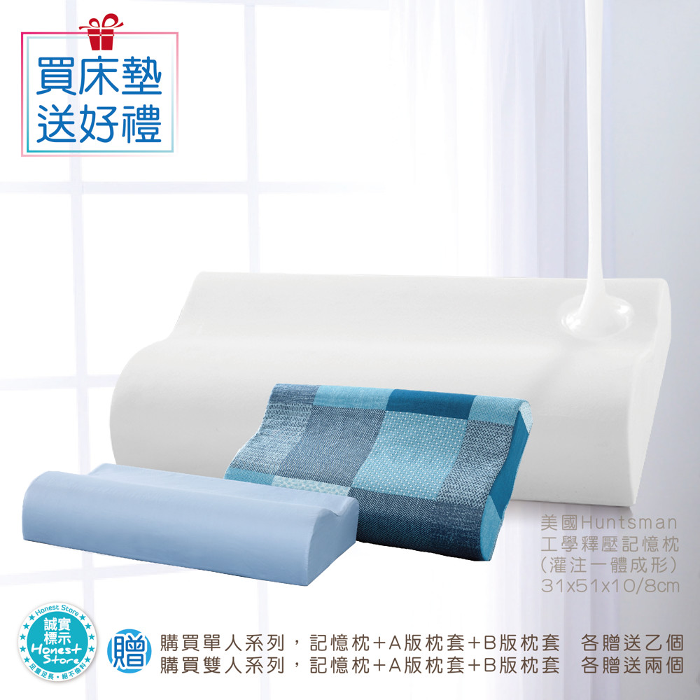 單人系列(單人3尺 或 單人加大3.5尺) 送 歐美熱銷款工學釋壓記憶枕 1個 + A版大鐘印染純棉枕頭套 1件 + B版大鐘印染純棉枕頭套 1件 + 抗菌保潔墊 1件