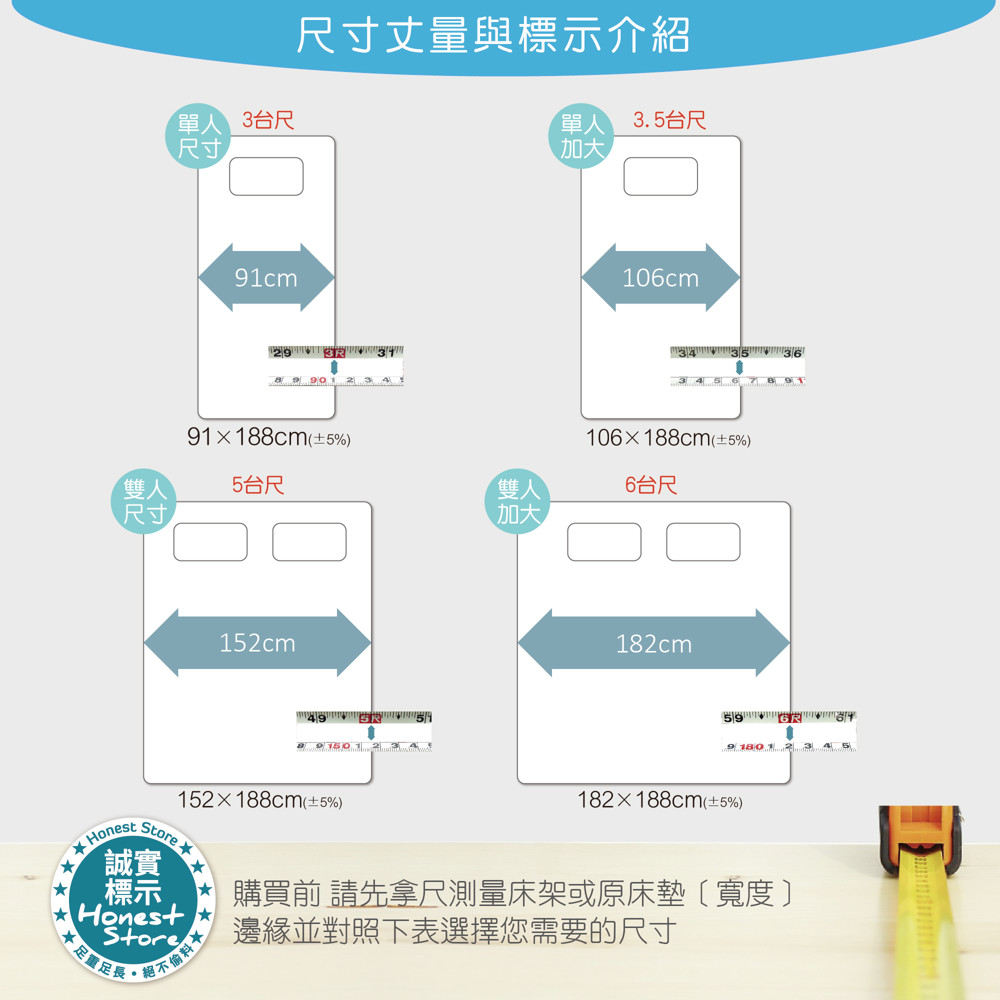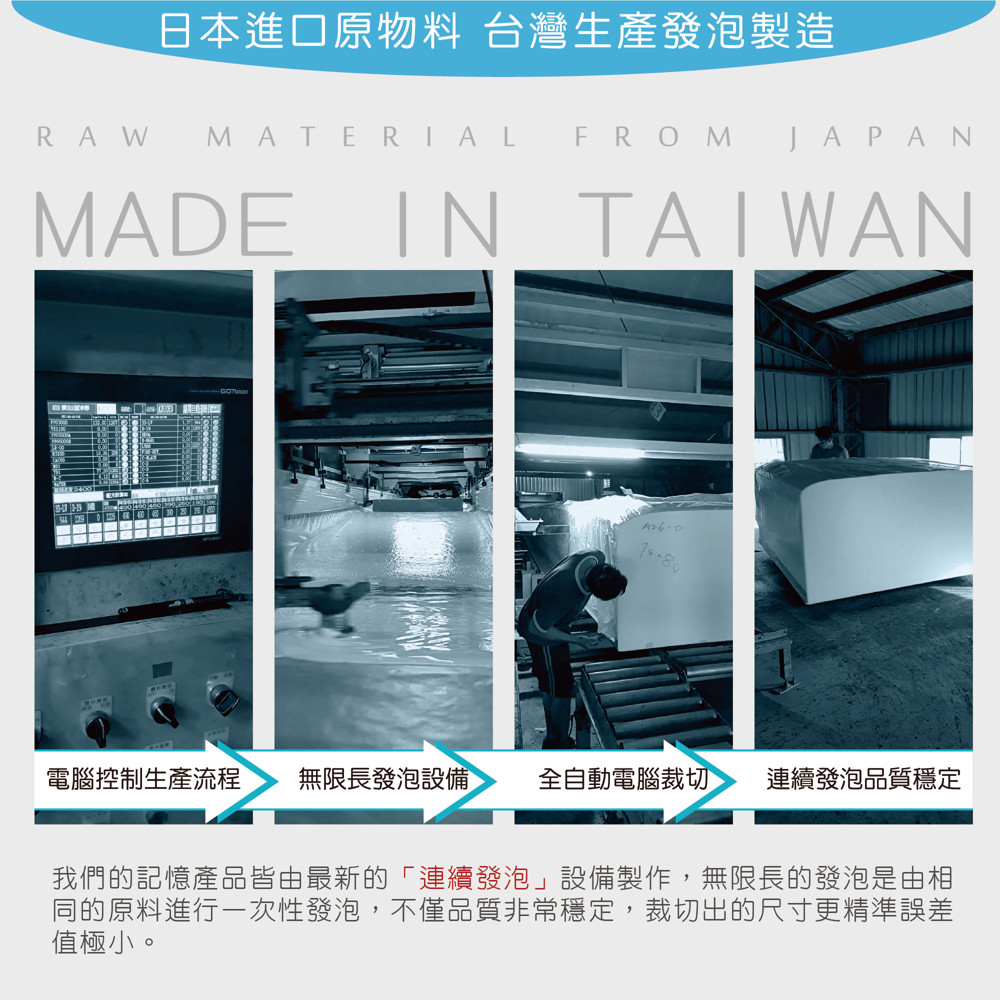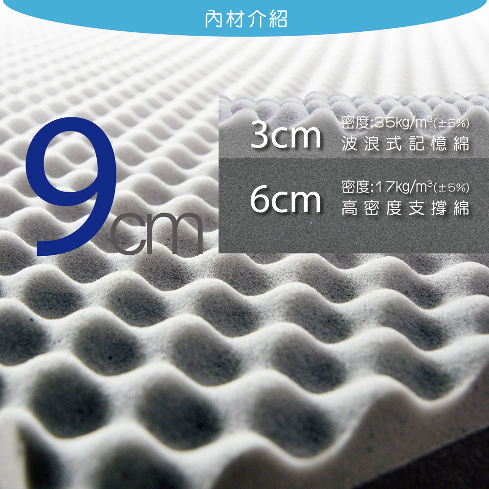 【材質】3cm波浪記憶綿35kg/m3(±5%) + 6cm支撐綿17kg/m3(±5%)