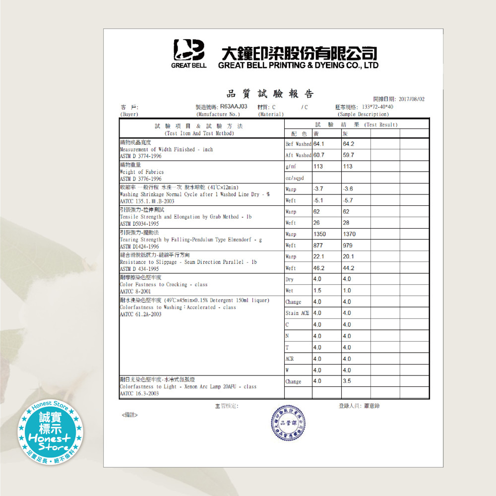 【材質】大鐘印染純棉表布(100%純棉、40支紗)