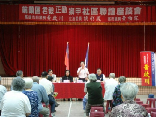 座談會下午五時到七時三十分舉行,由黃啟川.立法委員侯彩鳳與市議員黃柏霖主持 。來自各地的軍眷村居民在座談會上發言熱烈,提出各項建言,希望 能改善社區居住環境。