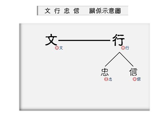 又,何故「子以四教:文,行,忠,信。」附上簡圖,待〈論語述而篇〉再作敘述。