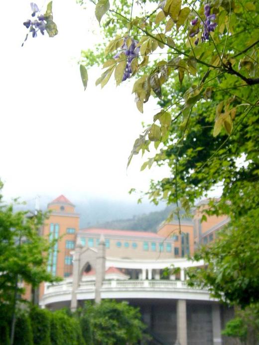 開著窗 看到隱約出現在樹冠的綠中間