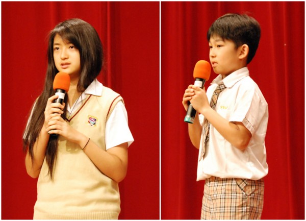 九年級金孝容、四年級張琮献,也上台分享了他們募款的經驗和心情。