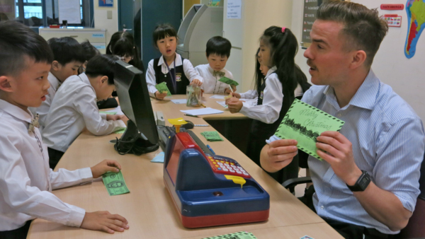 Christine 老師接著分享,記得曾有位 G3 小女生在上課時因樂於幫助老師,第一次獲得康橋幣開心的不得了,但她卻不小心將紙幣放進口袋中,洗衣服時忘記拿出來被洗壞,只剩下皺成一團的紙張,變得傷心不已。老師得知後雖心疼孩子的遭遇,卻也趁此機會反教育孩子,告訴她現實生活中只要能證明紙幣不是故意破壞,還是能憑藉證明到銀行換回新的幣值,讓孩子對於生活經驗又學到了新的一課。