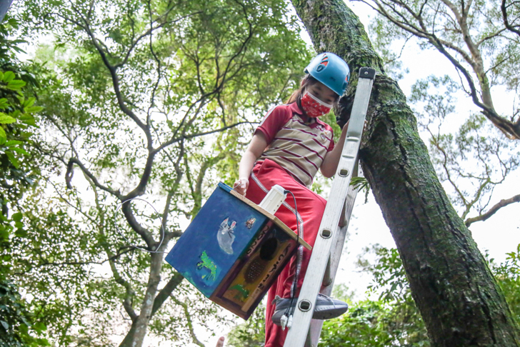 有了這段時期的甜美回憶,青山孩子相信領角鴞一家子還會再回來青山校區繁衍後代。當初會有專屬領角鴞的巢箱設置,便是因為孩子們發現到現今都市環境的干擾不易於領角鴞的生存,而牠們要在這種環境下找到符合生存條件的天然樹洞也不容易,因此孩子們決定幫領角鴞蓋一個人工的家,一棟能讓牠們順利繁殖的巢箱。
