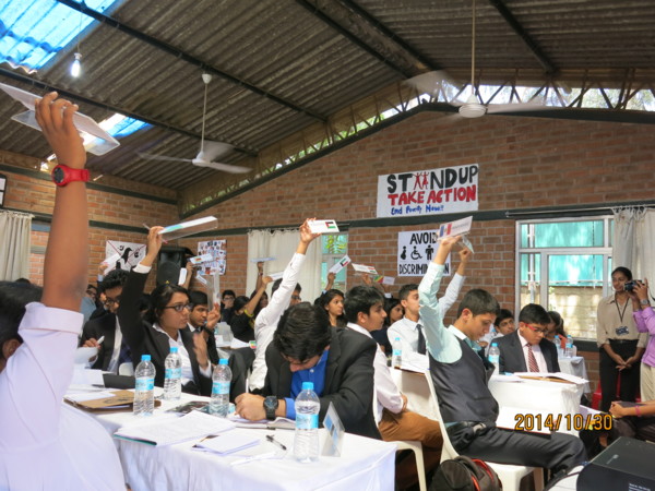 模擬聯合國(Model United Nations, MUN)是藉由仿效國際議事規則,模擬聯合國各委員會的會議,討論當前國際議題,使與會者瞭解多邊外交的過程,進而培養分析公民議題的能力,促進世界各地學生的交流,增進演講和辯論能力,提高組織、策劃、管理、研究、寫作、解決衝突、求同存異的能力,訓練批判性思考、團隊精神和領導才能,同時還可以認識不同文化,拓展國際視野,瞭解各國在歷史上或現實中的立場與處境。 日前,康橋有四位11年級的同學,御風、倚柔、子紘、正謙到印度參加“Bangalore Model United Nations Conference”,這一趟旅程雖然只有短短的六天,但對領隊老師或同學而言,都是一趟充滿震撼且具有豐富內容,足以讓人改變的旅程。