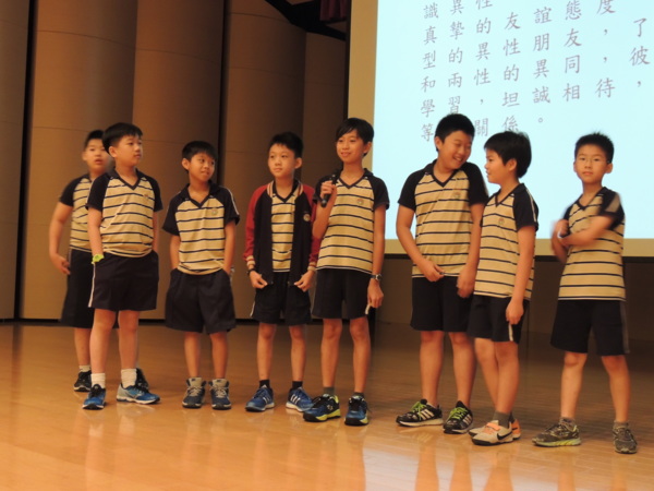 最後的真情告白時間,各班派出一位男同學和一位女同學上台和大家分享最欣賞的身邊異性朋友。大部份的女同學害羞的表示,欣賞的是爸爸和班導;而男同學則有人大方說出欣賞班上功課好、字體工整漂亮的女同學,現場立刻報以熱烈掌聲及歡呼,氣氛相當溫馨。