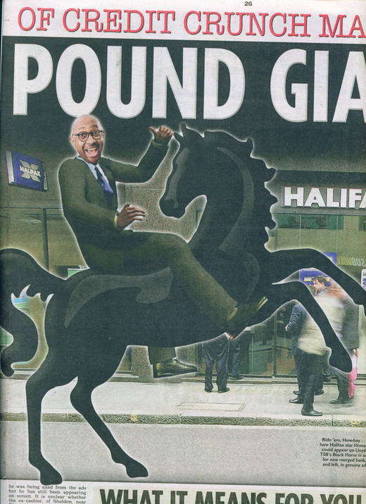 昨天英國首相GORDEN BROWN以強硬的態度要求這間銀行與LLOYDS TSB BANK(中國人稱它為黑馬銀行)合并.今天的各類報紙子以頭版新聞報導.