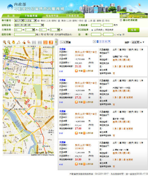 內政部次長簡太郎表示,9月份可供查詢的買賣案件有2.3萬餘件、租賃案件2,000餘件。加上8月份已揭露的1.9萬餘件,今天起民眾共可查詢4.4萬餘件資訊。 另外,新北市原有一件7戶預售屋案登錄,是首宗預售屋成交登錄,但因面積部分計算有誤,新北市政府考量後暫不予登錄。 他指出,「不動產實價交易查詢網」自10月16日起開放民眾查詢8月份交易案件的登錄資訊,至11月15日,網站訪客超過180萬人次。為使查詢系統維持穩定,內政部加大頻寬、增加伺服器,更設置雲端機房,並已完成壓力測試。 簡太郎說,為讓民眾方便查詢,從今天起上網查詢的時間,從原訂5分鐘放寬至8分鐘,原規定一次可查詢28筆資料,也放寬為100筆,目前網路查詢採免收費服務,但若要申請重置或複製批次電子檔,就要收費。 簡太郎表示,下周一(19日)開始對外提供8月份資料的申請,並依「內政部及所屬機關提供政府資訊收費標準」收取費用,以實際申請需求計算,100M以內收費2,000元。目前8月份資料僅8M,未來再多幾個月的資料,申請費用也不會超過2,000元。相關申請細節將在地政司網站公布。 內政部今天公布9月份資料,但未隨同8月份資料一併開放民眾申請重置或複製批次電子檔,地政司副司長王靚琇說,8月份資料公布1個月後,發現有7筆登錄錯誤,例如小數點點錯、地址打錯等,已進行修改,由於複製批次電子檔給民眾要收取費用,為求精確與慎重,將再檢視1個月,9月份案件要到12月中旬才供民眾申請購買。 另外,目前不動產交易如含有車位時,地政士、不動產經紀業者或權利人於申報時,並未強制將車位面積及車位價格單獨申報,為讓交易資訊更透明,內政部將要求須完整登錄,以利揭露的單價計算時,立即可分算車位價格,並揭露扣除車位的單價。 【聯合新聞網/綜合報導】 9月份實價登錄資料今天上午8點上線,根據聯合新聞網記者實際測試,網頁開啟與使用速度皆暢通無阻,未出現網頁塞爆導致動彈不得的情形。上午8點10分就已有2千多人在線上查詢資料。