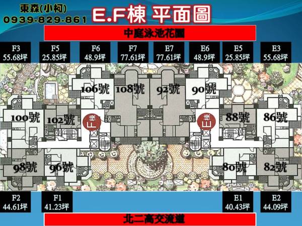 F棟.25樓:房子41.63坪3房2廳2衛+平面車位(7.39坪).總價:2760萬