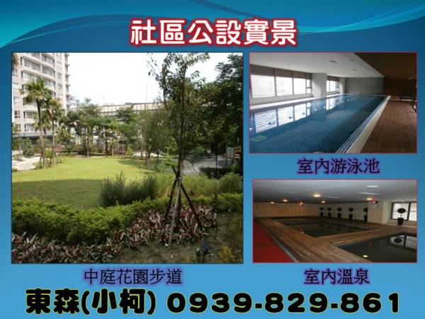 社區公共設施:中庭花園.游泳池.健身房.桌球室.撞球室.閱覽室
